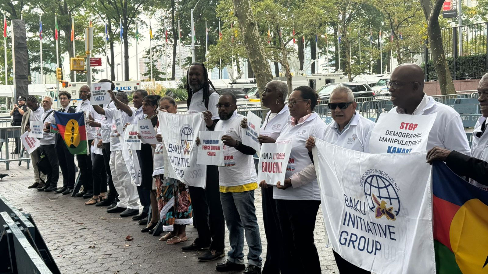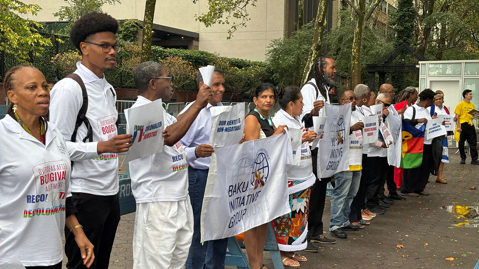 Subsequently, representatives from the colonial territories conducted a peaceful protest in front of the United Nations office.